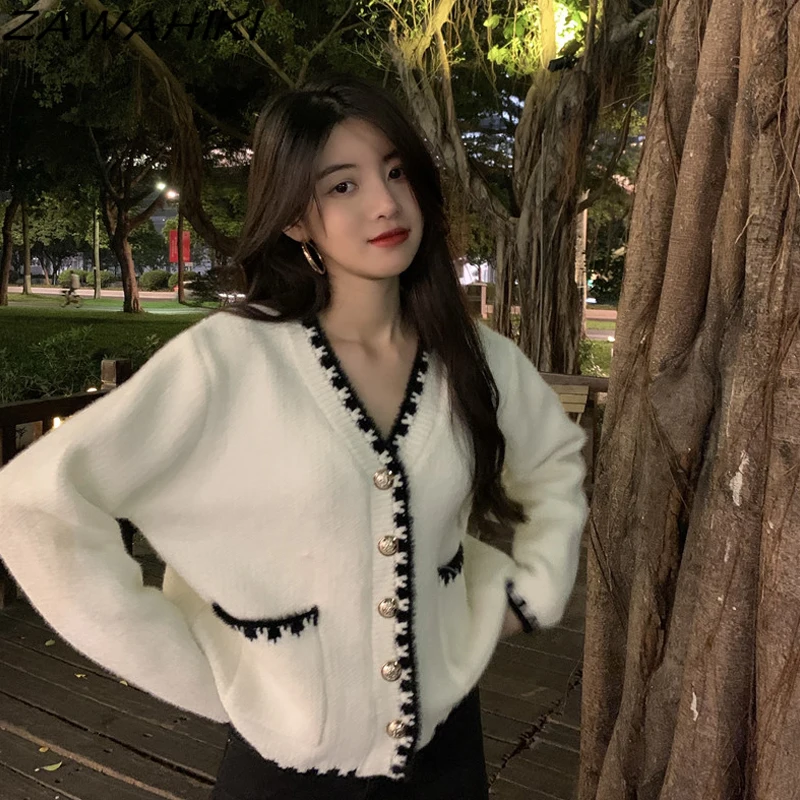 Осенне-зимний вязаный кардиган с V-образным вырезом