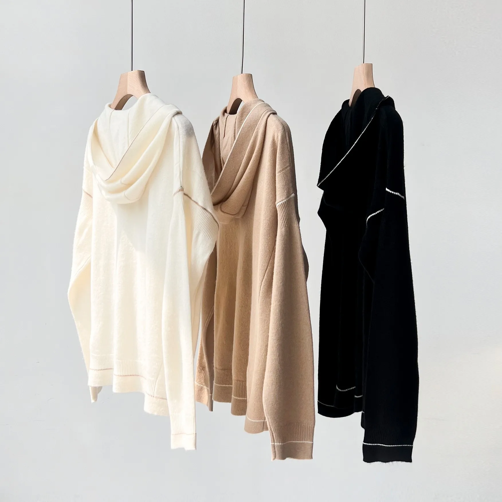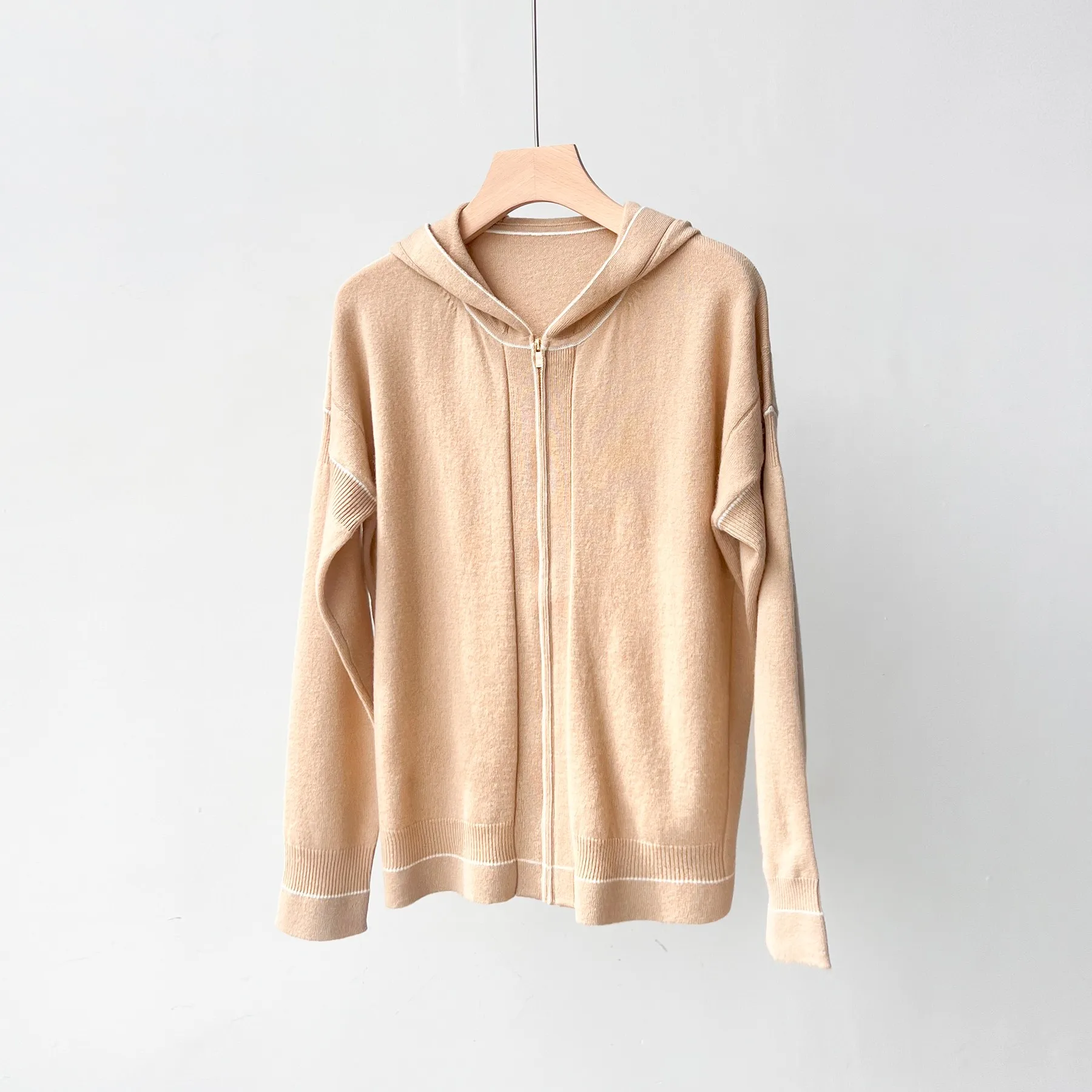 Осенне-зимний вязаный пуловер, свитер с капюшоном, кашемировый женский кардиган