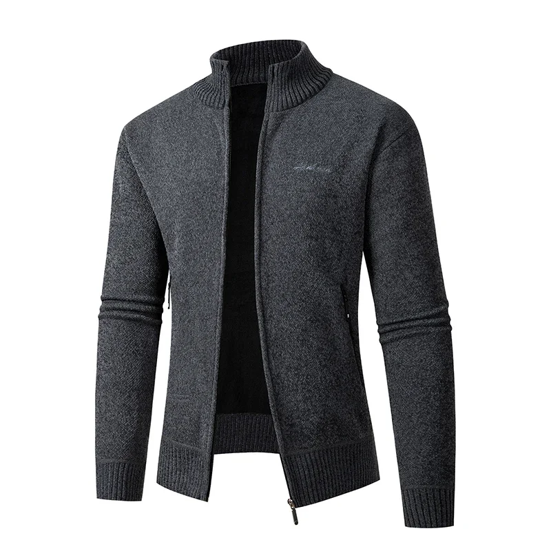 Осенне-зимний вязаный свитер, кардиган с воротником-стойкой, мужской свитер