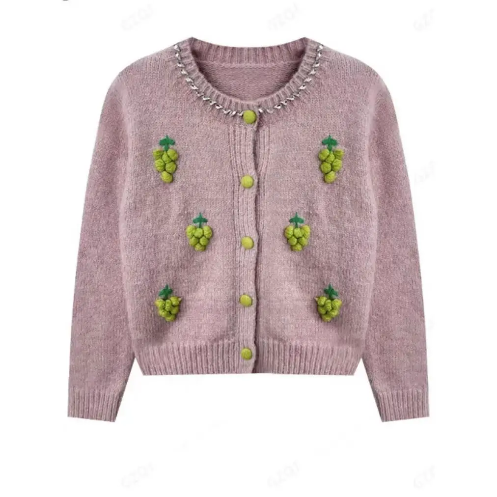 Осенне-зимний женский вязаный кардиган с вышивкой и цветочным принтом