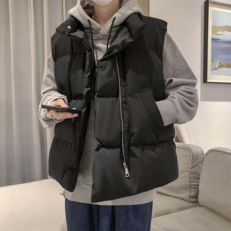 Осенне-зимний жилет из хлопка, мужская одежда, свободный жилет без рукавов на молнии, универсальный, красивый и модный, мужской, повседневный, теплый, толстый жилет 2XL чёрный