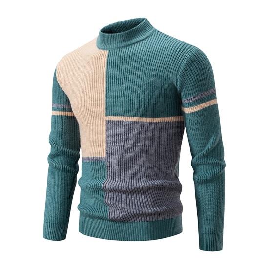 Осенне-зимний мужской свитер с цветными блоками, вязаный толстый, облегающий, теплый, с полувысоким воротником и длинным рукавом, мягкий пуловер, эластичный мужской свитер средней длины M серый