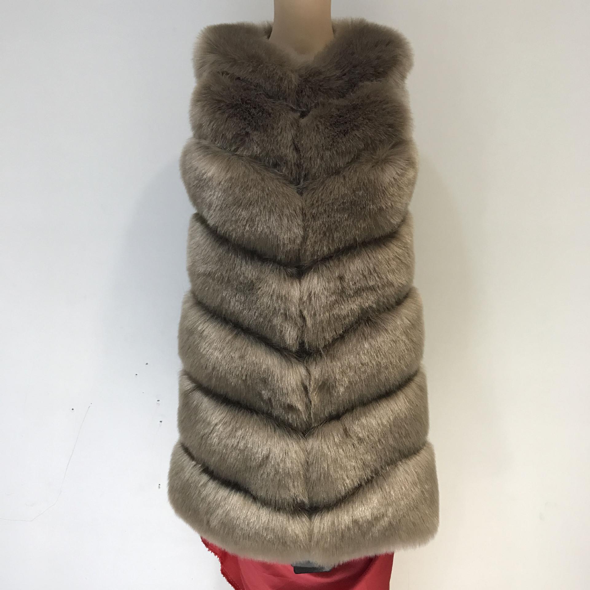 Осенне-зимний новый жилет из искусственного меха лисы, женский длинный корейский приталенный жилет и тонкое пальто XXL