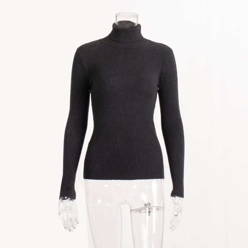 Осенне-зимний свитер с высоким воротом, женский облегающий теплый вязаный свитер с длинным рукавом, женский мягкий джемпер, трикотажные топы 24643 XL чёрный