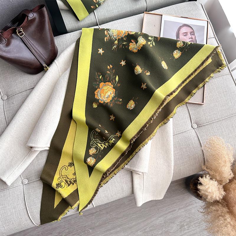 Осенне-зимний треугольный шарф с принтом роз, утолщенный теплый шарф, шаль для комнаты с кондиционером, для улицы, для женщин 135cm зелёный