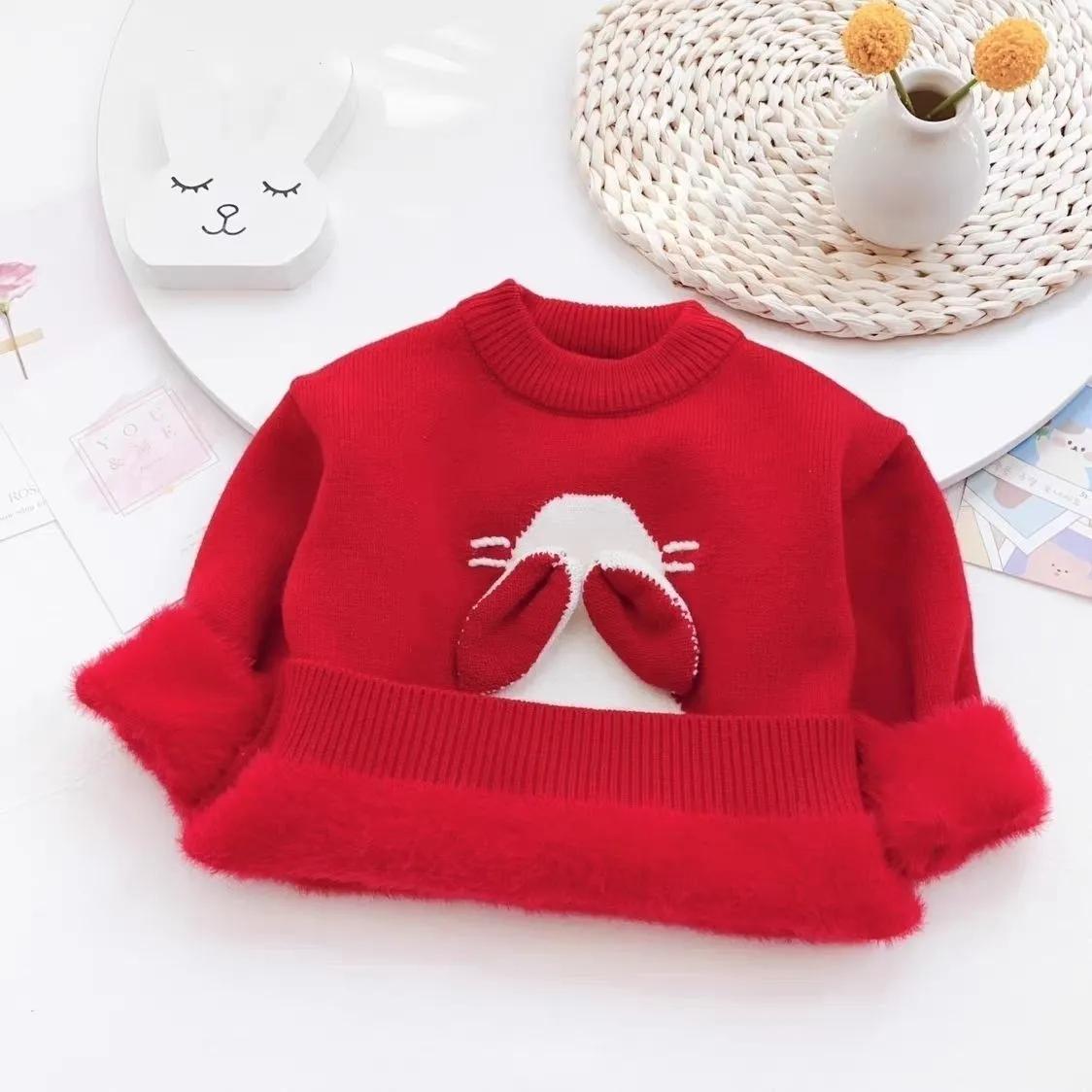 Осенне-зимний утепленный и утепленный милый свитер с длинными рукавами и принтом для девочек 90 красный