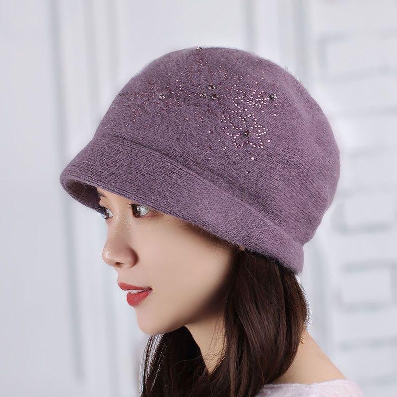 Осенне-зимняя бархатная теплая шерстяная шапка для женщин, модная вязаная шапка с цветком из кроличьей шерсти, ветрозащитная шапка для защиты ушей от ветра One size