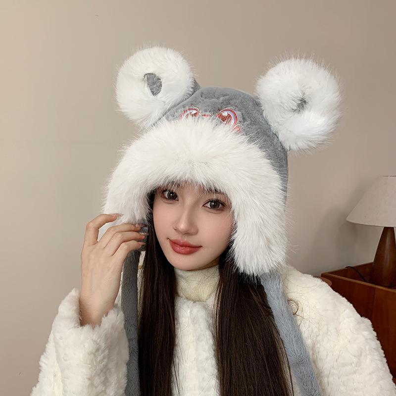 Осенне-зимняя бархатная утолщенная шапка женская корейская версия милые медвежьи ушки плюшевая теплая защитная шапка для ушей M56-58cm
