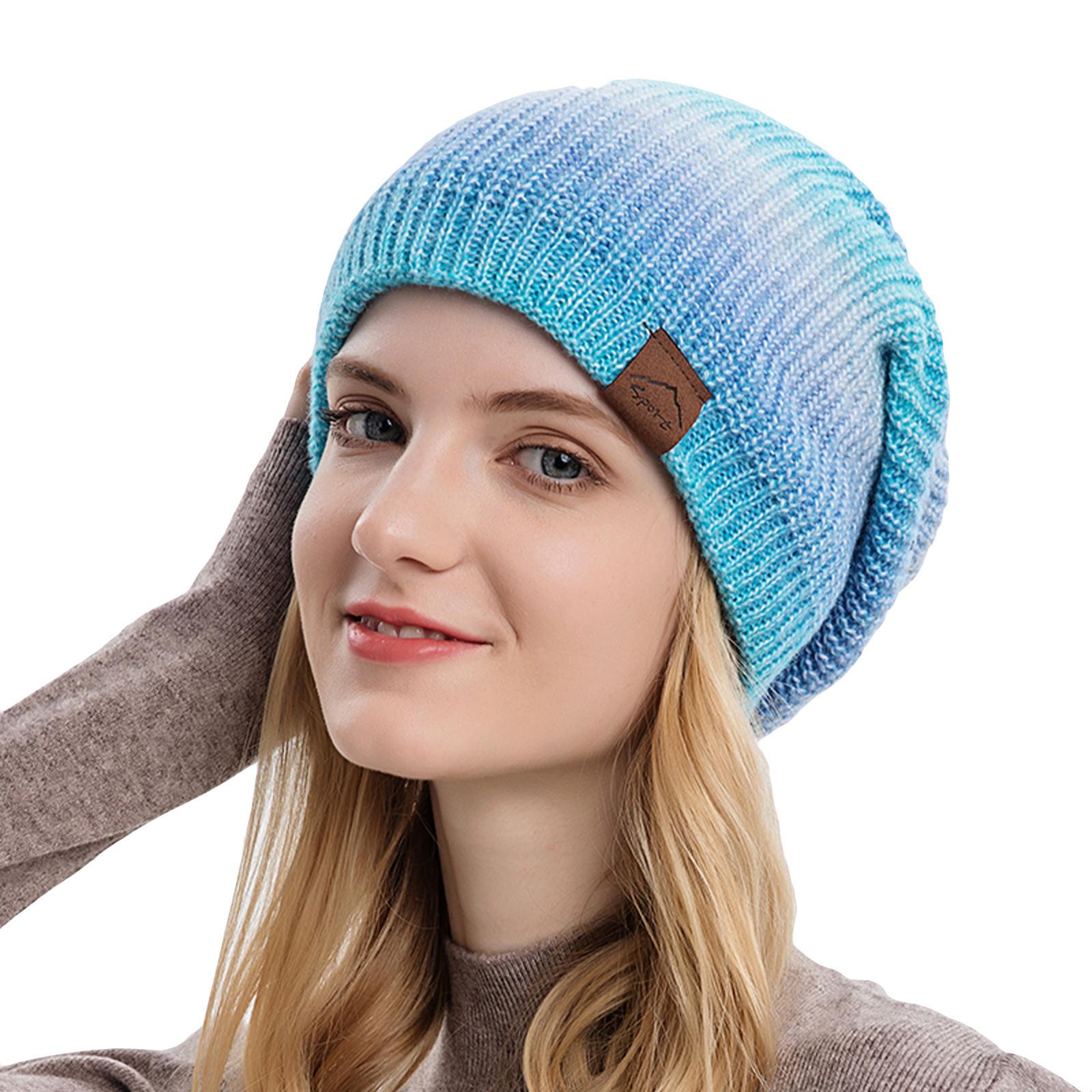 Осенне-зимняя вязаная шапка Градиентная теплая шапка Радужная модная шерстяная шапка One size синий