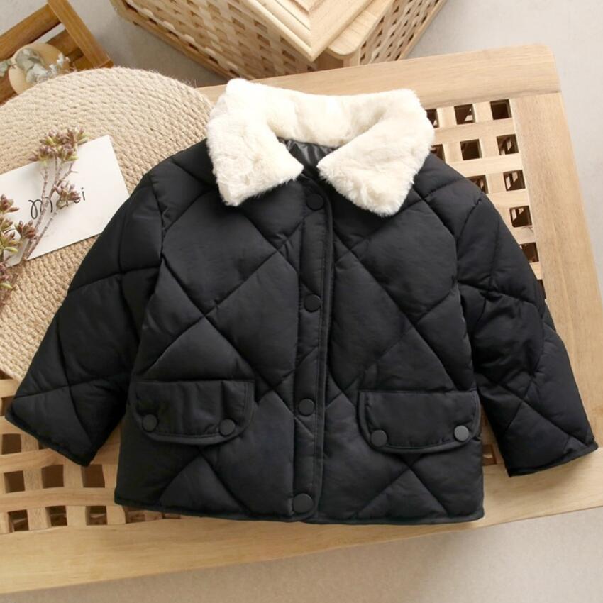 Осенне-зимняя детская одежда Пальто для девочек с меховым воротником Легкий пуховик для младенцев Куртка ярких цветов для детей 130cm чёрный