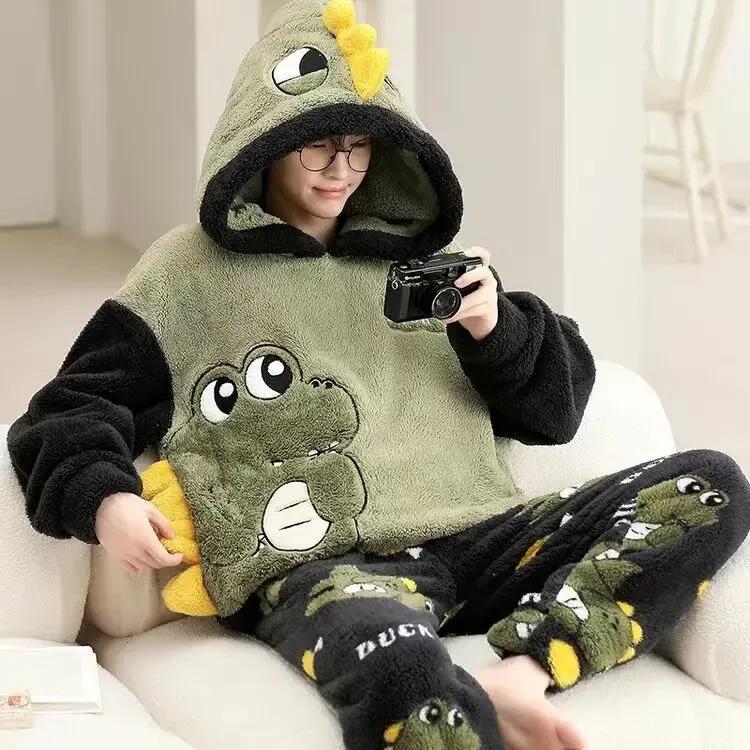 Осенне-зимняя домашняя одежда Коралловый флис Мужская пижама Толстая меховая фланель Мультяшные мужские комплекты домашней одежды Большие размеры Домашняя одежда Костюм Пижама L