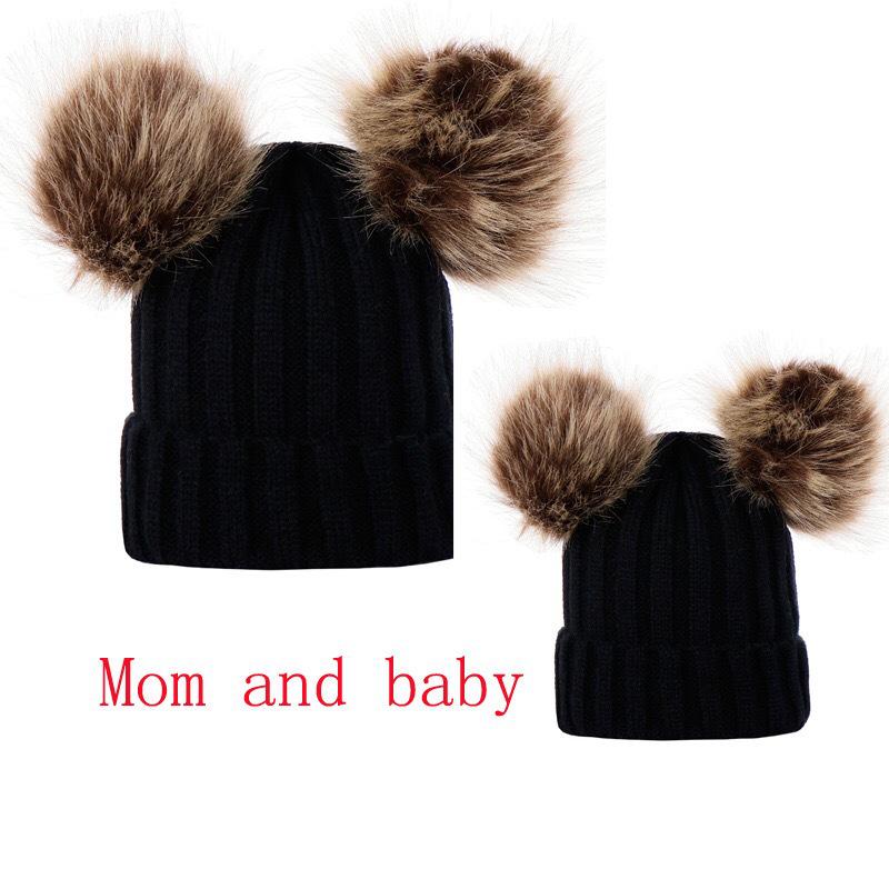 Осенне-зимняя женская вязаная шерстяная шапка для родителей и детей с двойными помпонами