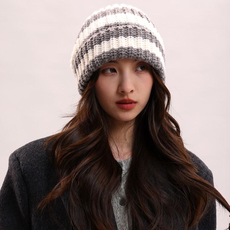 Осенне-зимняя женская/мужская шапка-мешок с полосками на лице, большая окружность головы, шерстяная шапка, теплая вязаная холодная шапка, пуловер, шапка one size