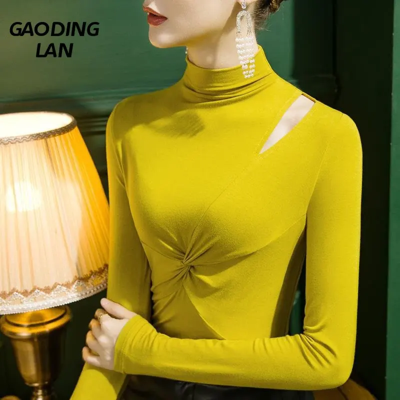 Осенне-зимняя женская однотонная Водолазка с длинным рукавом, Женская Облегающая рубашка из модала, Соблазнительный топ с вырезами