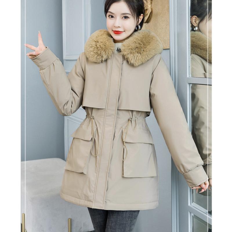 Осенне-зимняя женская однотонная съемная корейская версия с капюшоном на талии, теплая женская куртка, 5 цветов XXXL хаки