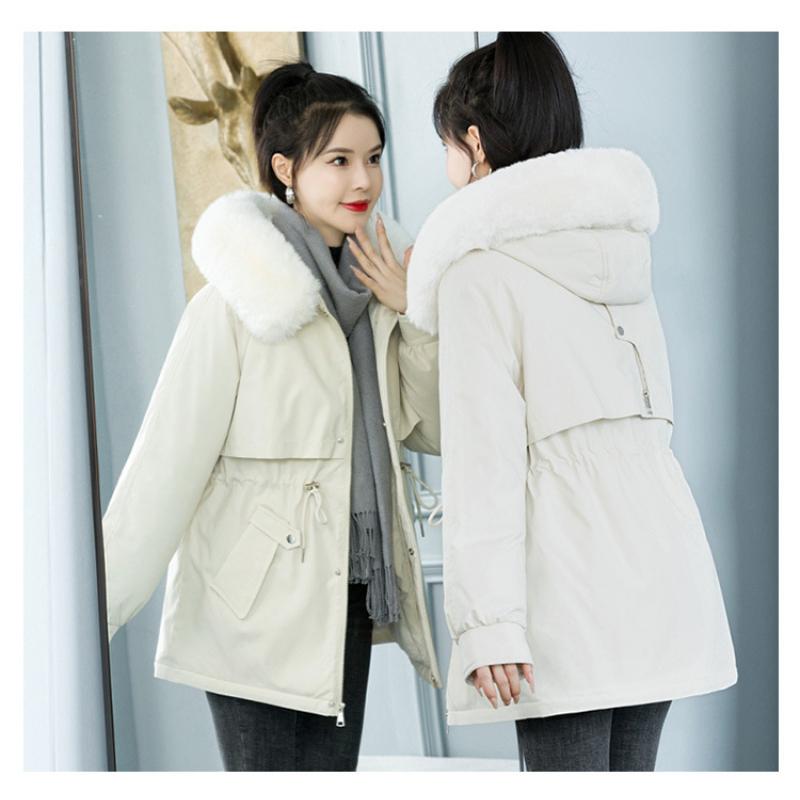 Осенне-зимняя женская однотонная теплая женская куртка средней длины с капюшоном для преодоления утолщения, 6 цветов L бежевый