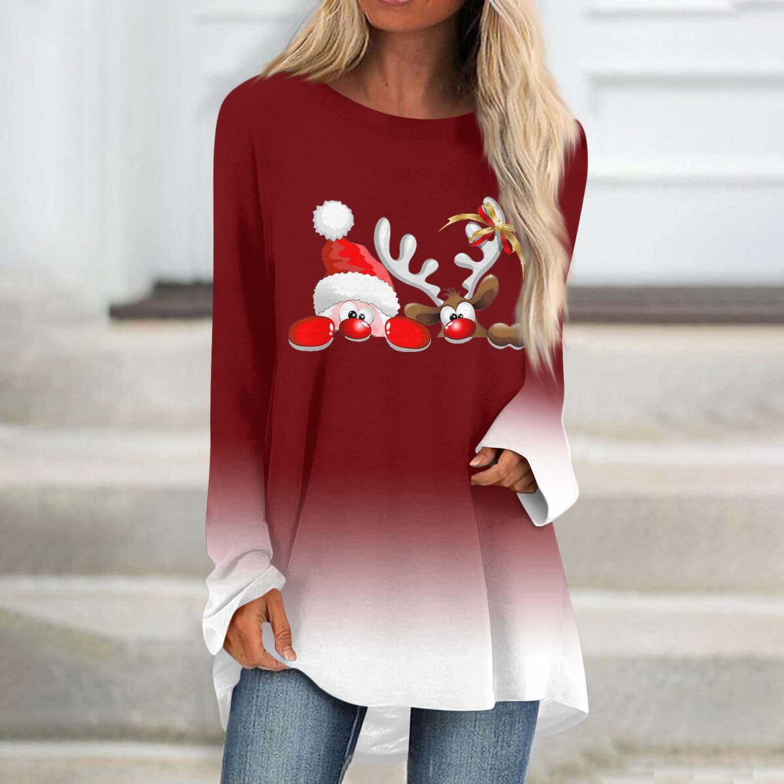 Осенне-зимняя женская повседневная мода с рождественским принтом, длинный рукав, миди-топ, нарядная рубашка, пуловер L красный
