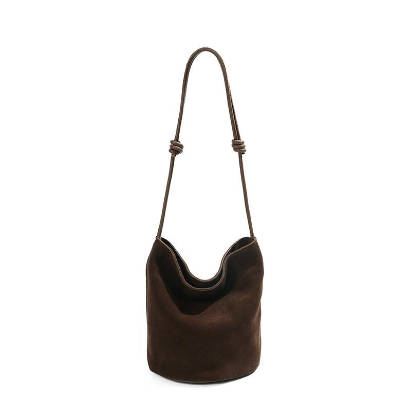 Осенне-зимняя женская сумка-мессенджер из замши и замши, матовая коровья кожа, высококачественная изысканная портативная маленькая сумка-ведро кофейный