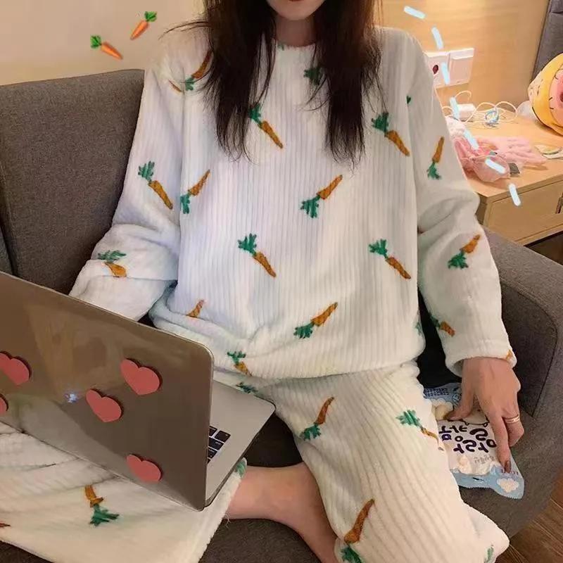 Осенне-зимняя женская теплая пижама, комплект домашней одежды, коралловый бархат, морковная пижама, женская повседневная утепленная теплая домашняя одежда 40-70kg синий