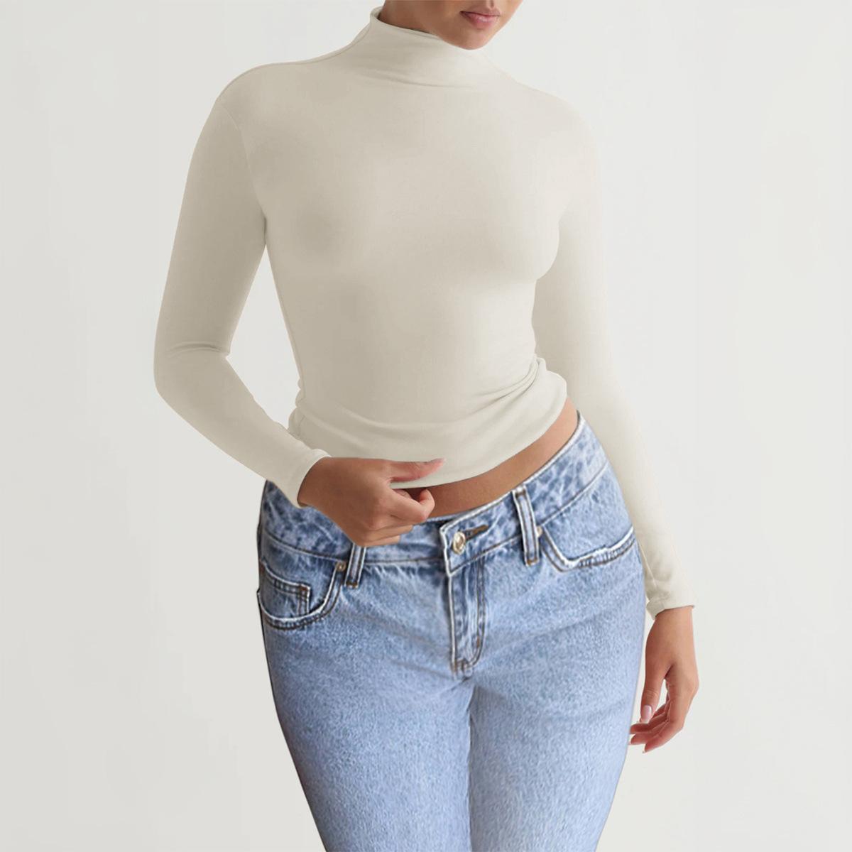 Осенне-зимняя женская тонкая однотонная трикотажная футболка с длинными рукавами XL абрикосовый
