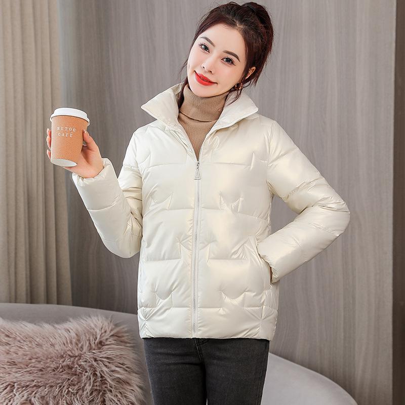 Осенне-зимняя корейская куртка-пуховик с воротником-стойкой, модная женская повседневная хлопковая куртка, стильная хлопковая куртка для поездок на работу L белый