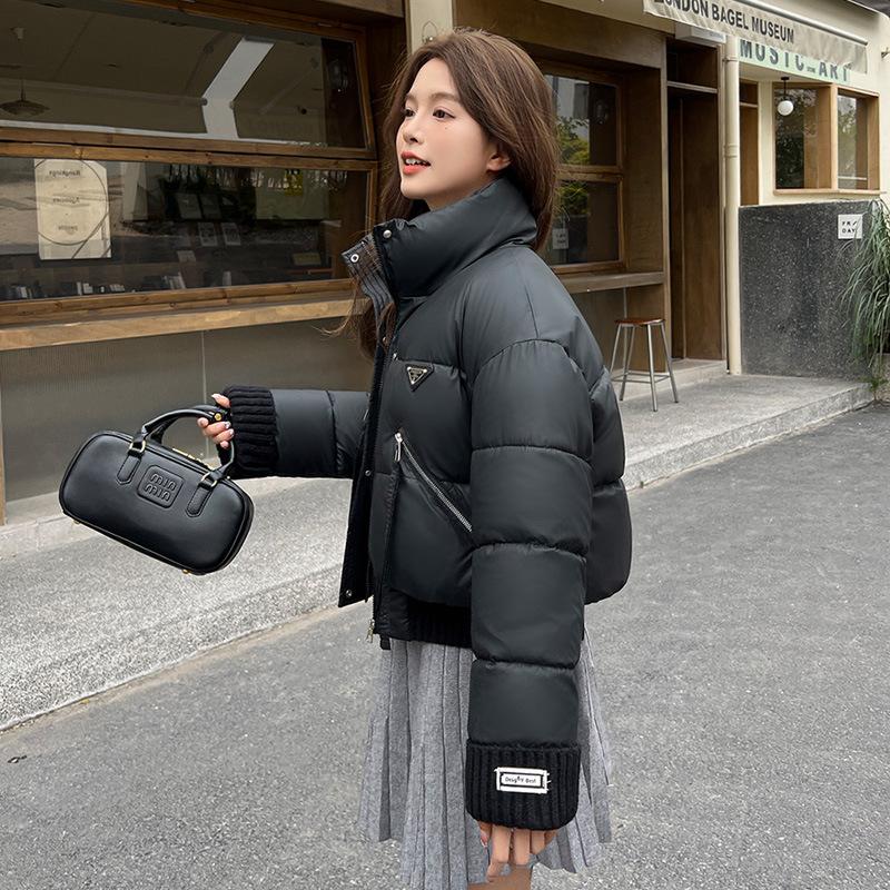 Осенне-зимняя короткая хлопковая куртка больших размеров, женская куртка с воротником-стойкой, модная куртка из хлопка с эффектом старения M чёрный