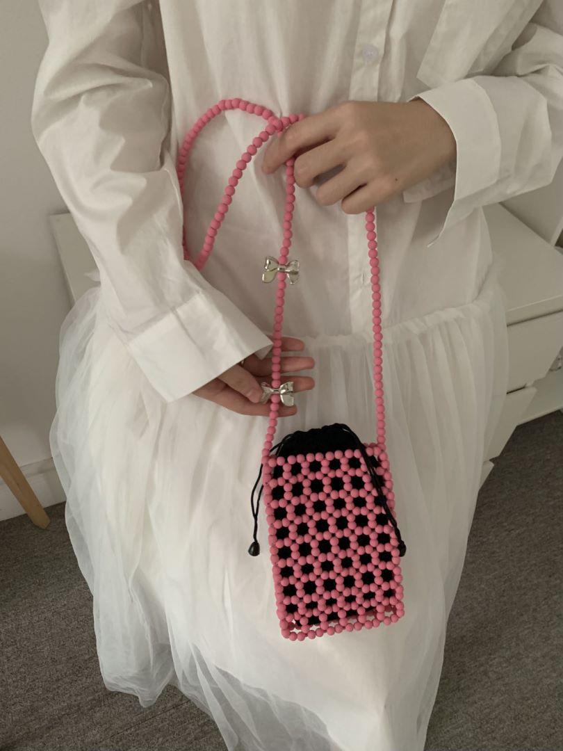 Осенне-зимняя матовая женская сумка из бисера 2024 года, новая плетеная сумка для мобильного телефона из бисера розовый