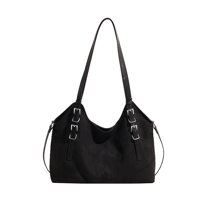 Осенне-зимняя матовая сумка в стиле ретро для женщин 2024 года, новая сумка через плечо для поездок на работу, высококачественная портативная сумка-тоут чёрный