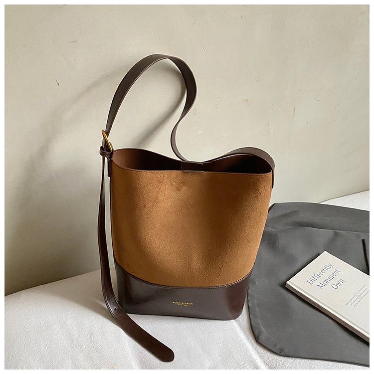 Осенне-зимняя модная сумка-мессенджер женская сумка для поездок на работу 2025 новая замшевая сумка-ведро универсальная простая сумка на плечо коричневый