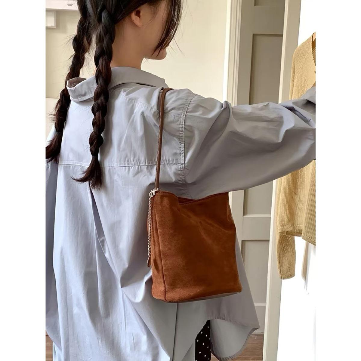 Осенне-зимняя новая замшевая маленькая сумка-ведро женская ретро премиум матовая сумка через плечо подмышку прилив коричневый
