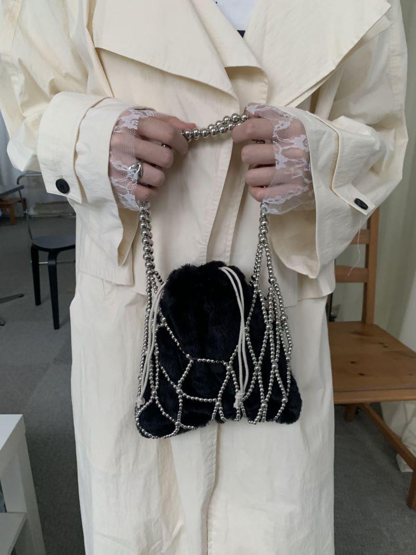 Осенне-зимняя плюшевая сумка с жемчужной цепочкой, сумка-мешок с нишей, полый дизайн, сумка для рыболовной сети, кролик Мао Мао, кошелек серебряный