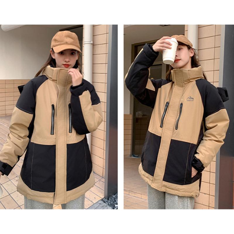 Осенне-зимняя рабочая одежда для пар, пуховые и хлопковые куртки, модная женская одежда, модели средней и большой длины, плотные повседневные хлопковые куртки M верблюд