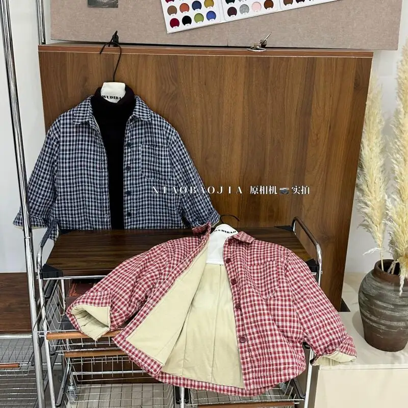 Осенне-зимняя стеганая куртка для мальчиков и девочек, теплое пальто, клетчатые топы с длинными рукавами, новая модная детская одежда в корейском стиле от 7 до 12 лет