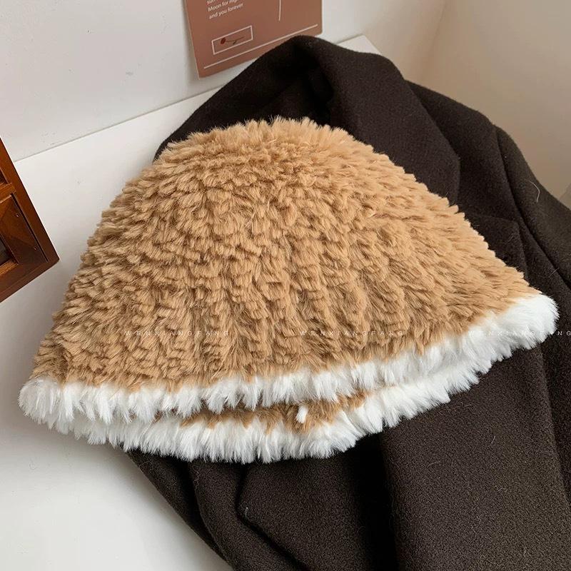 Осенне-зимняя теплая утолщенная шерстяная шапка, модная пушистая большая версия, универсальная вязаная шапка, плюшевая шапка рыбака для студентки M(56-58cm)