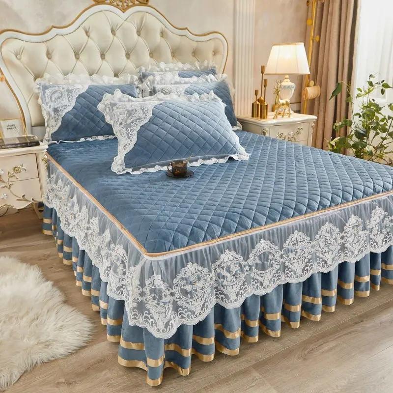 Осенне-зимняя теплая флисовая юбка-кровать, цельная хлопковая подкладка, утолщенное покрывало на кровать, кружевное нескользящее покрывало в стиле принцессы 180x200cm