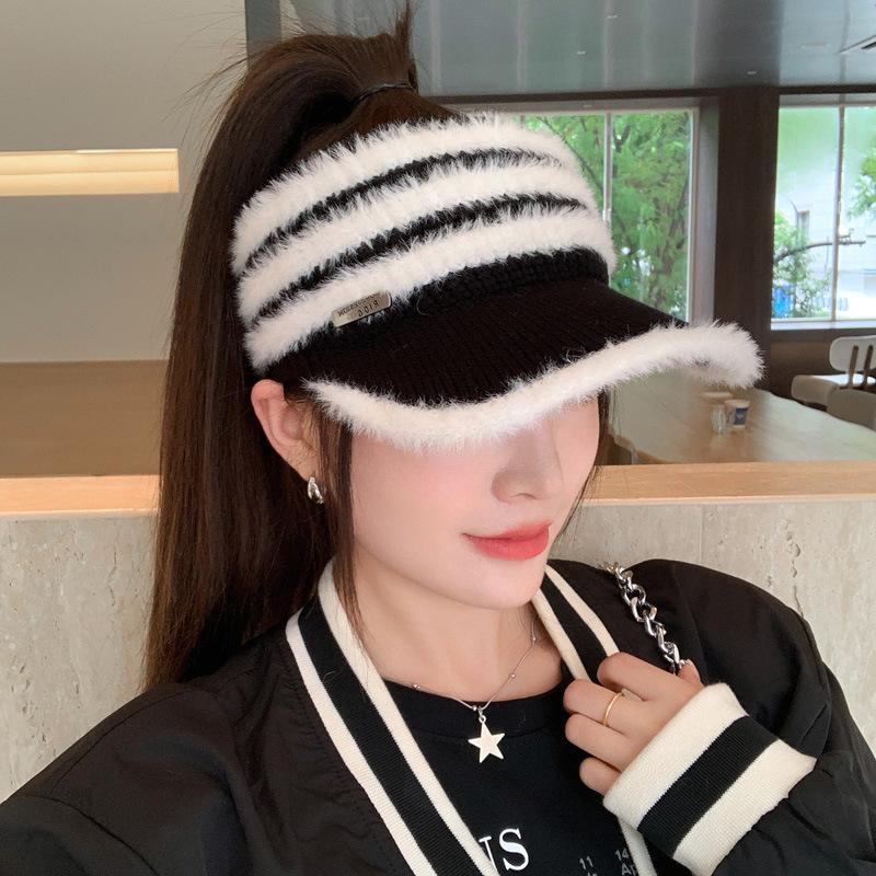 Осенне-зимняя теплая шапка женская полосатая вязаная шапка из шерстяной нити шапка для занятий спортом на открытом воздухе ветрозащитная с защитой ушей шерстяная шапка One Size чёрный