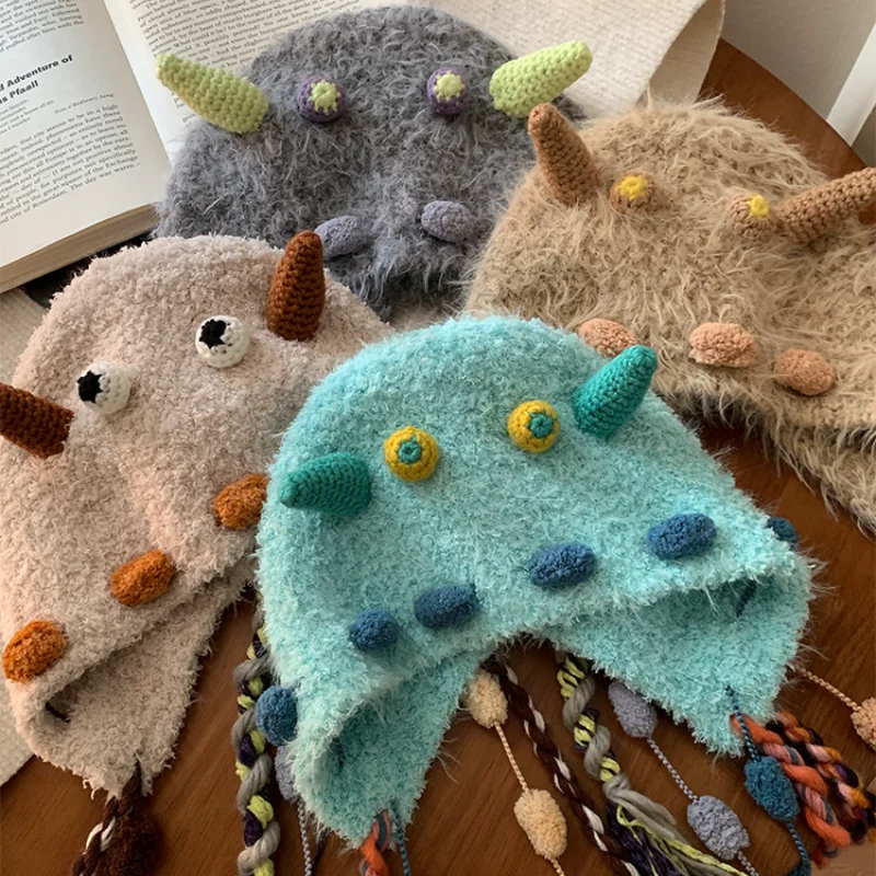 Осенне-зимняя теплая шапка, милая вязаная шапка, плюшевая шапка-монстр, утолщенная теплая шапка для защиты ушей от холода, подарок на день рождения-сюрприз