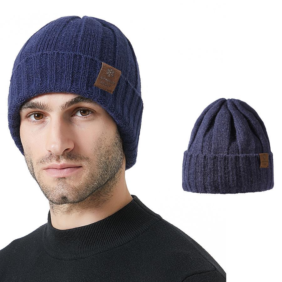 Осенне-зимняя толстая бархатная однотонная вязаная шапка, мужская уличная теплая шапка, женская шерстяная шапка темно-синий