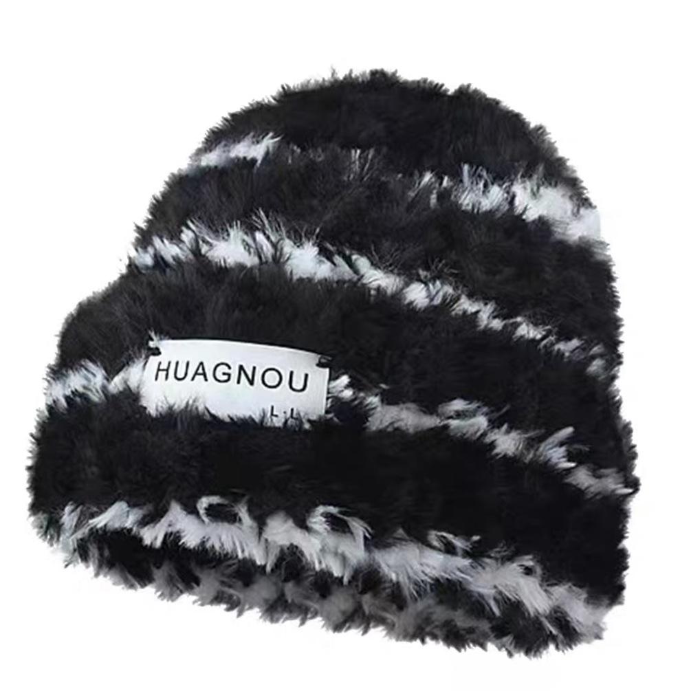 Осенне-зимняя утолщенная теплая шерстяная шапка с цветными полосками, сотни плюшевых пуловеров, женская шапка