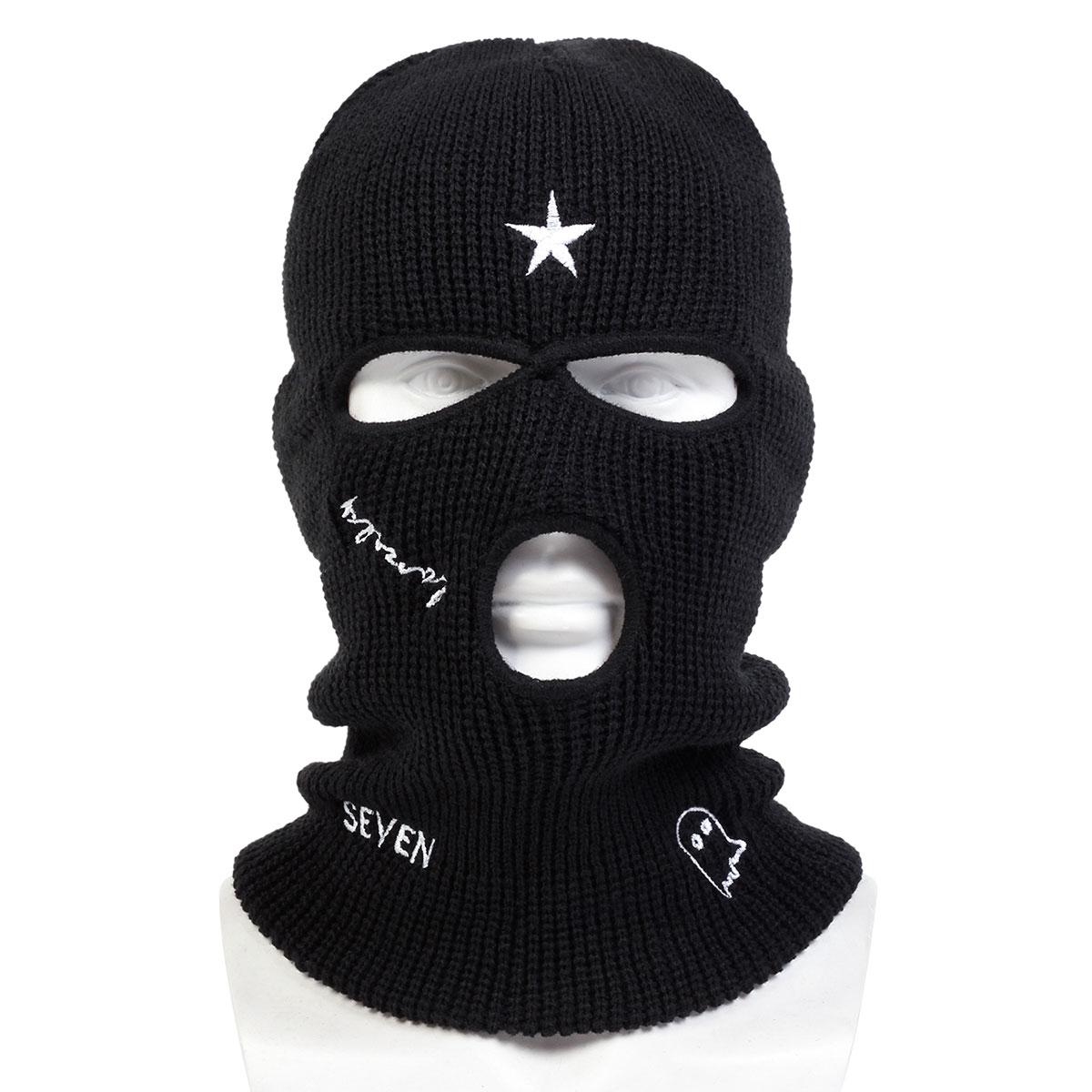 Осенне-зимняя шапка-балаклава с вышитыми буквами, модная ветрозащитная и морозостойкая шапка-пуловер, спортивная кепка для катания на лыжах, теплые шапки-бини чёрный