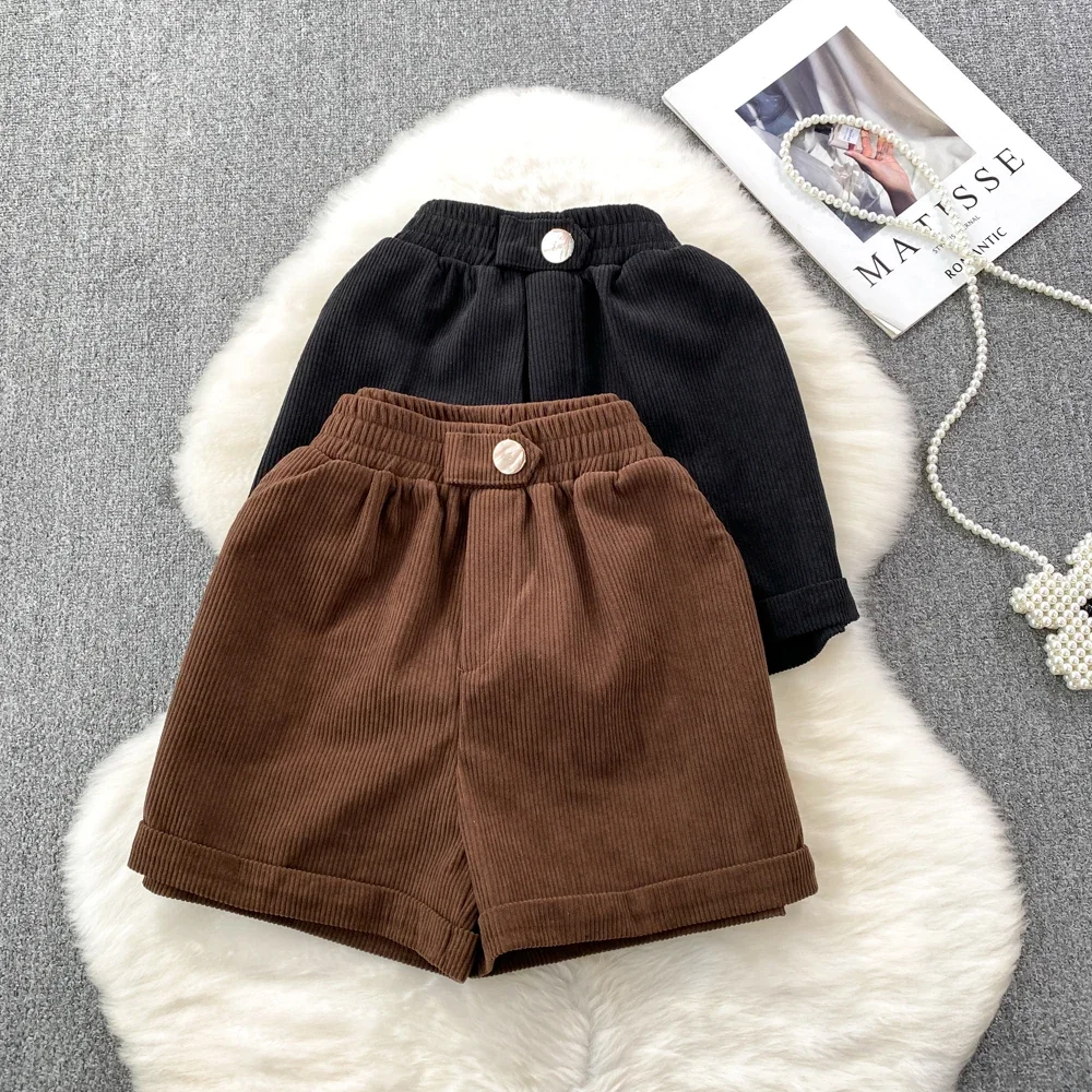 Осенние вельветовые шорты для женщин эластичные трапециевидные с высокой талией однотонные женские короткие брюки с широкими штанинами женские шорты Прямая поставка