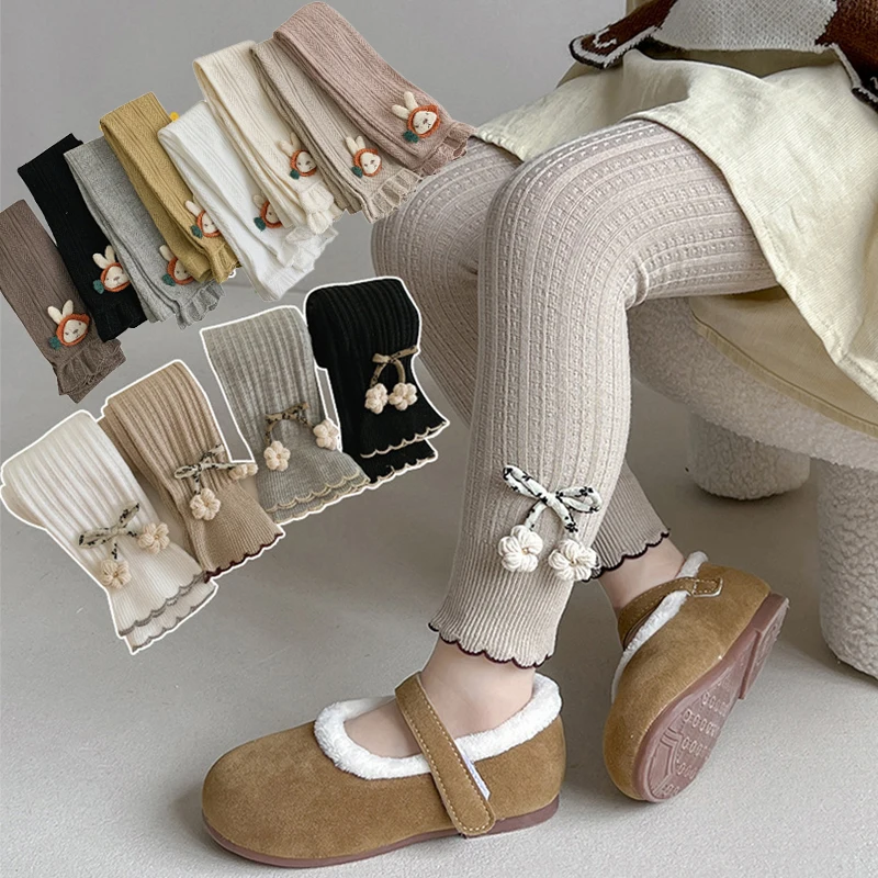 Осенние детские милые колготки с куклой кролика Хлопковые утепленные леггинсы для девочек детские трикотажные брюки для рождественской вечеринки мягкие носки