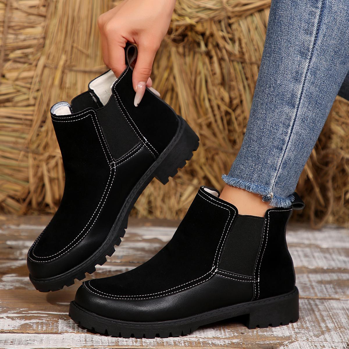 Осенние женские ботинки челси 2024 года, черные, коричневые, на платформе, ботильоны, женские, большого размера 43, на плоской подошве, нескользящие, короткие ботинки 36 чёрный