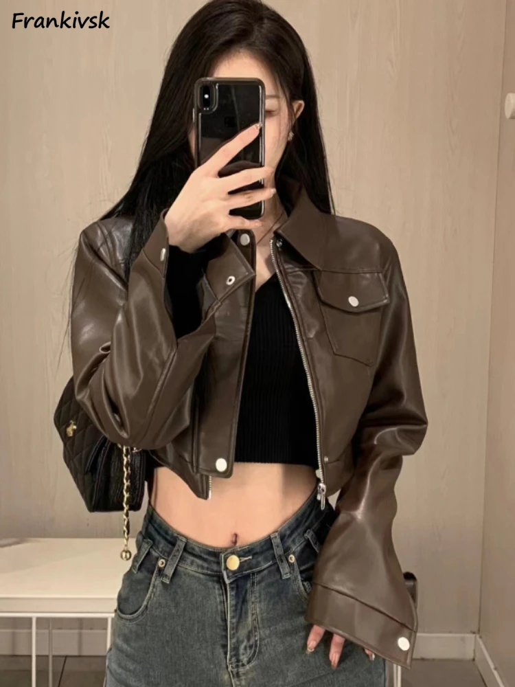Осенние женские куртки, классные повседневные Водонепроницаемые Универсальные мотоциклетные укороченные топы в стиле ретро из искусственной кожи в Корейском стиле, свободные повседневные куртки