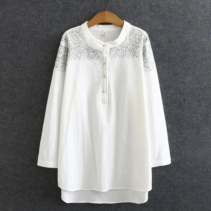 Осенние женские рубашки, женские однотонные топы, женские блузки с длинным рукавом, вышитый хлопок, свободная одежда больших размеров L белый