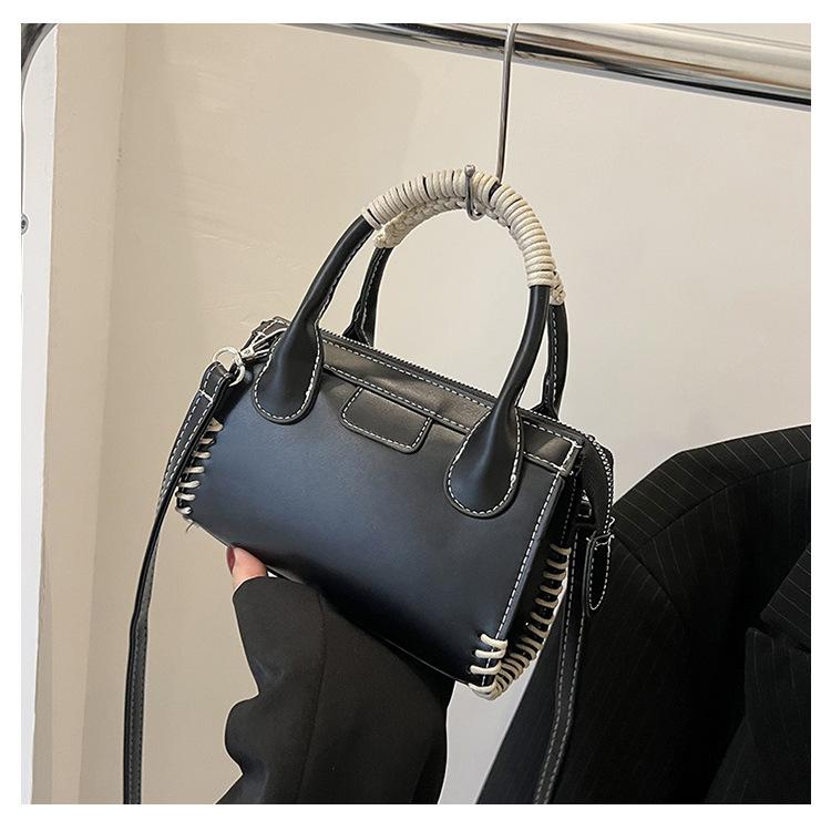 Осенние и зимние новые ретро-сумки Boston для женщин, высококачественные сумки-мессенджеры через плечо, плетеные сумки-барабаны в иностранном стиле чёрный