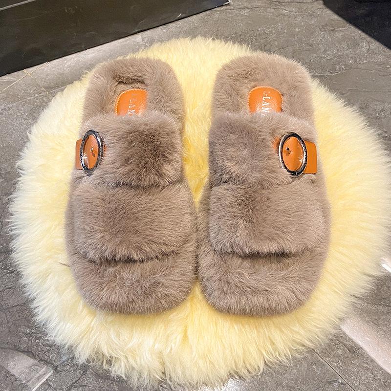 Осенние и зимние тапочки с квадратной головкой из меха, пряжка для ремня, модное утолщение, подчеркивающее внешний вид дома снаружи, теплые тапочки 40 хаки
