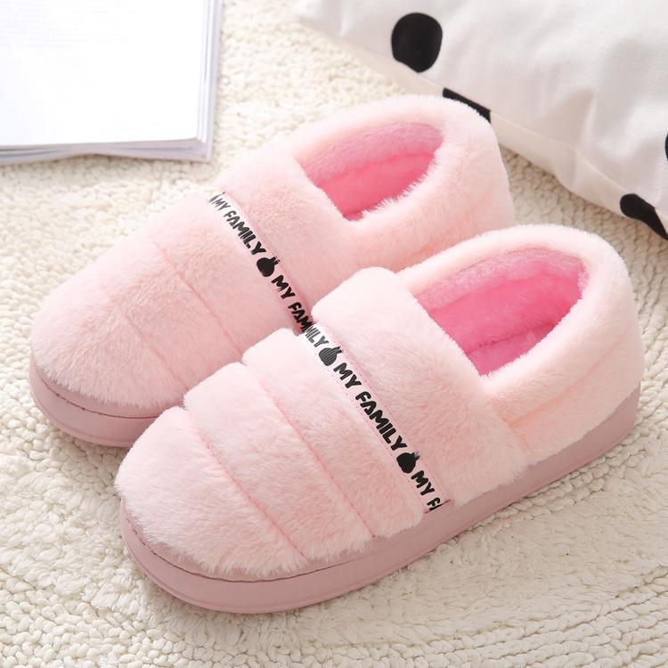Осенне-зимние хлопковые тапочки на толстой подошве с плюшем из искусственного кролика для пар Size 40-41 розовый