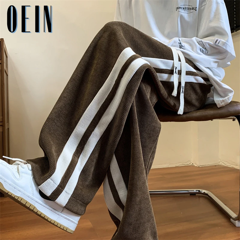Осенние мешковатые полосатые спортивные брюки, мужские Модные прямые брюки, уличная одежда в стиле хип-хоп, брюки в стиле Харадзюку, штаны для бега Y2K, мужская одежда