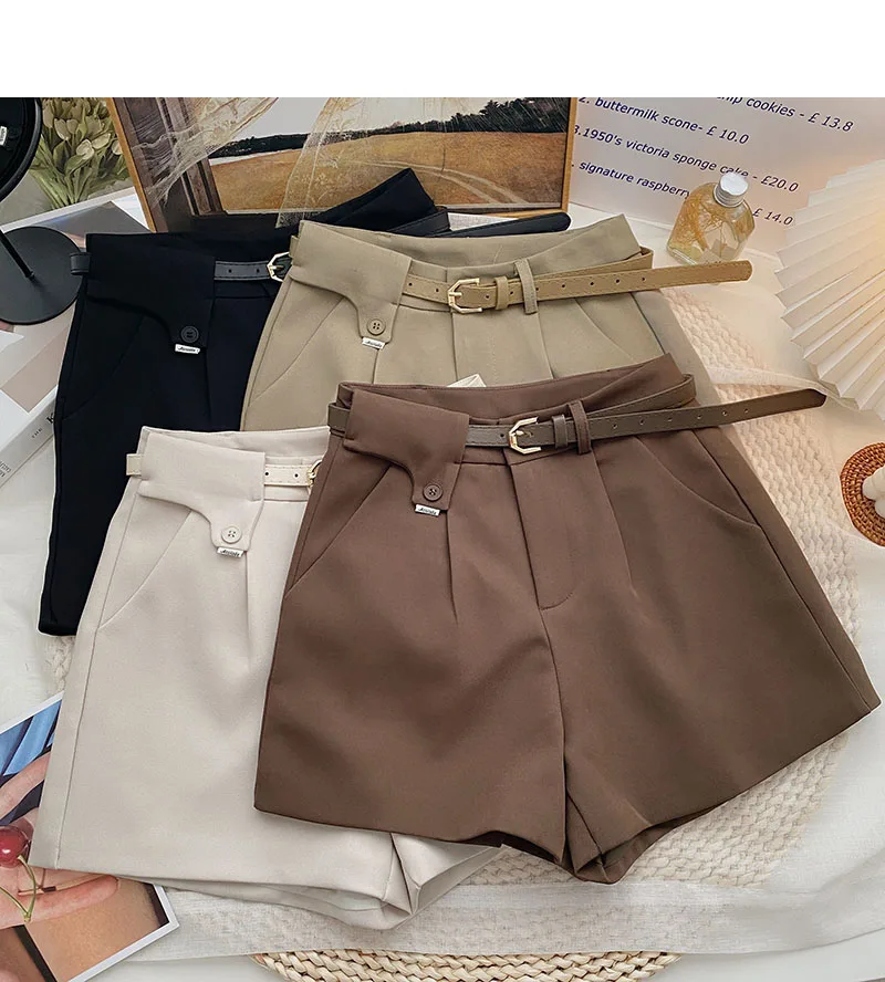 Осенние новые корейские повседневные универсальные черные Костюмные шорты с высокой талией и широкими штанинами для женщин